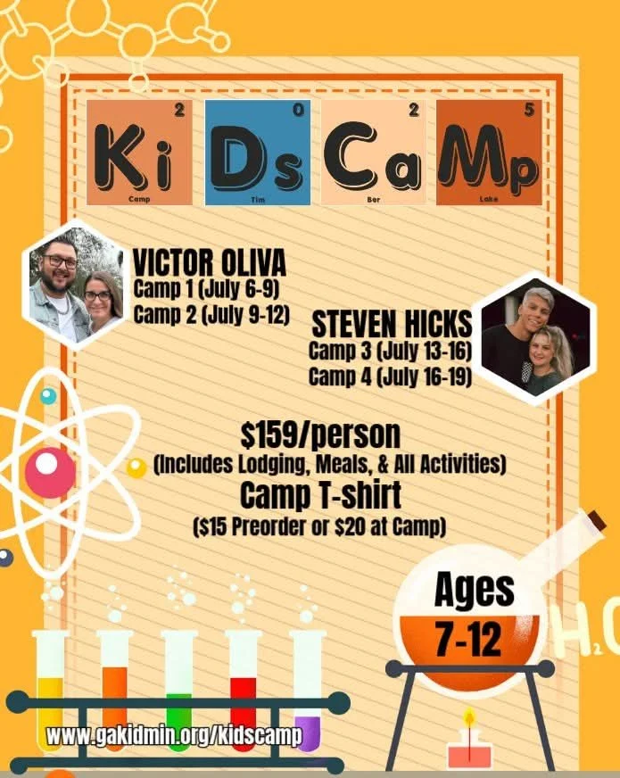 Kids camp is going to be July 9th-July 12, 2025. Drop off and pick up times may change. Please see Jacob or Michelle Segers for more information!